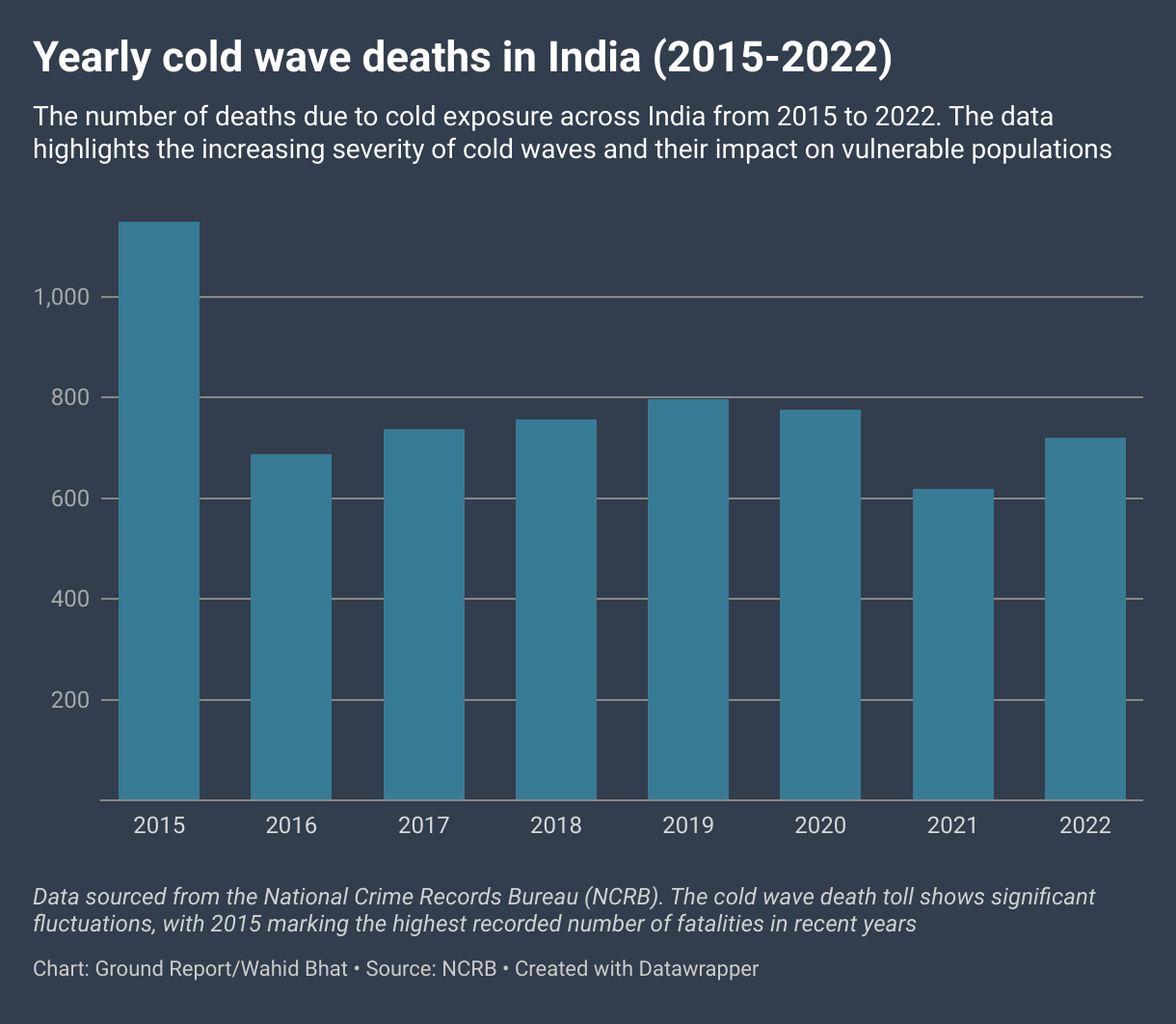 While the risks of cold waves are well-documented, discrepancies in cold wave-related death data make it challenging to assess the true scale of the issue. Ground Report analysis of both datasets found significant discrepancies between the two sources.