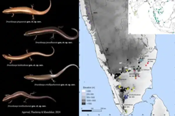 The ‘Dravidoseps Gouensis’, a new genus, has been discovered in various locations including Utsum in North Goa, and the districts of Sindhudurg and Kolhapur in Maharashtra. In Kolhapur, it has been spotted in areas like Radhanagari, Pandivare, Talye, and Vashi.