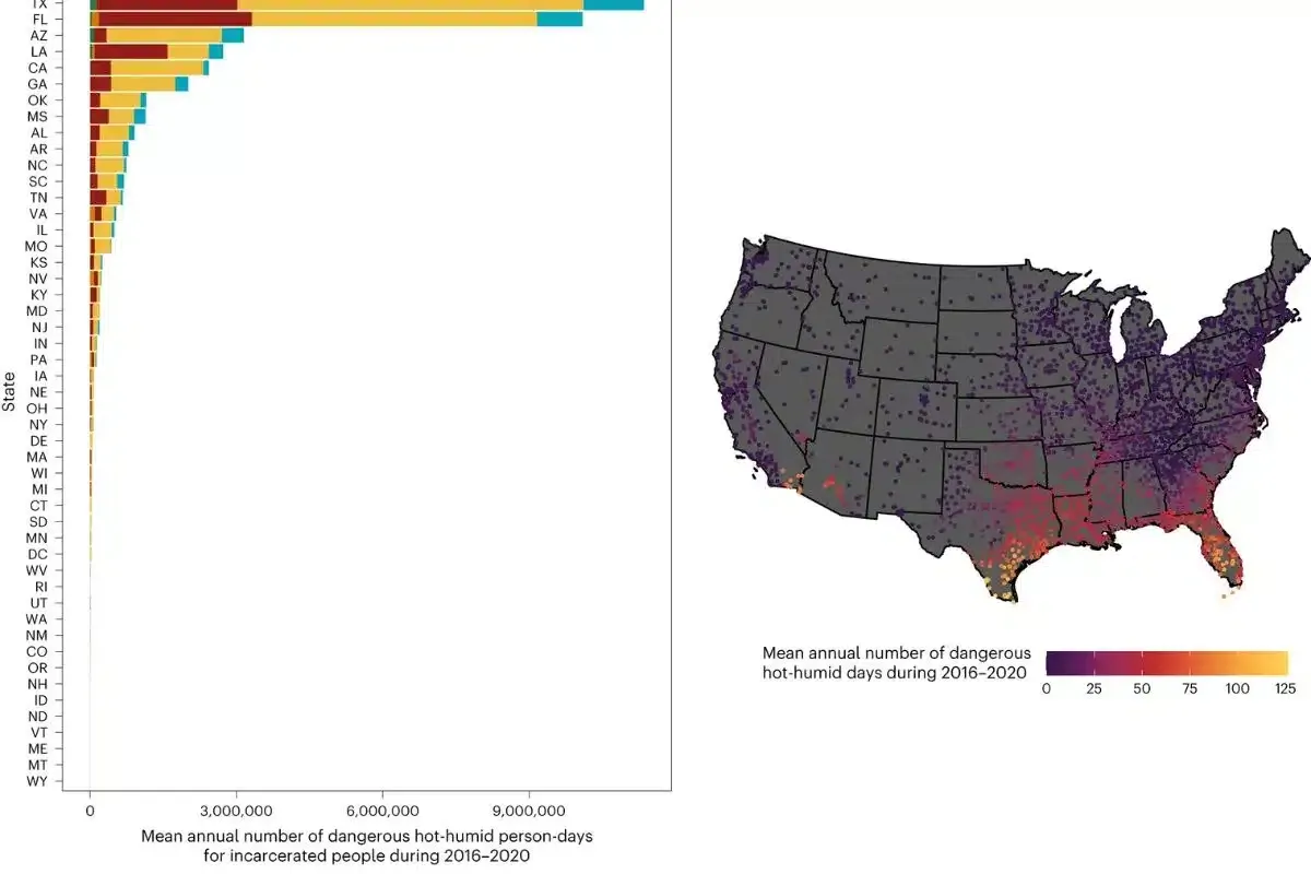A new study reveals that prisoners in the United States are exposed to dangerous levels of heat and humidity, putting them at risk of serious health problems and even death.
