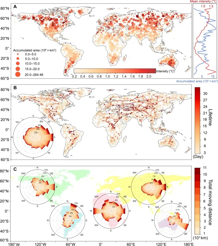 Several outside scientists praised how Zhang and his colleagues examined heat waves in a big picture way, showing the interaction with weather patterns, their global movement, and especially their slowdown.