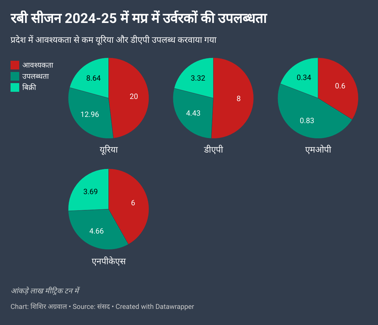 लोकसभा में 29 नवम्बर को एक सवाल का जवाब देते हुए राज्य मंत्री पटेल ने मौजूदा रबी सीजन 2024-25 में रासायनिक उर्वरकों की उपलब्धता से सम्बंधित आंकड़े पेश किए। इनके अनुसार मध्य प्रदेश को आवश्यकता से कम उर्वरक मिला है।