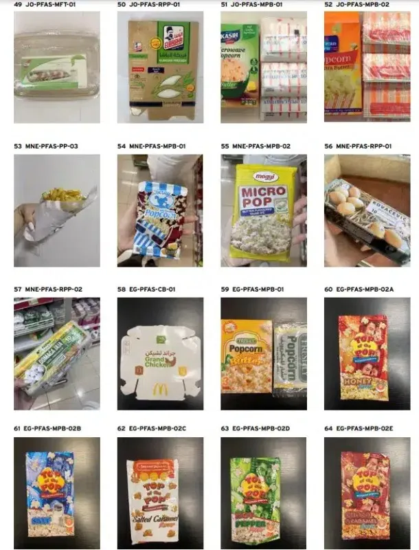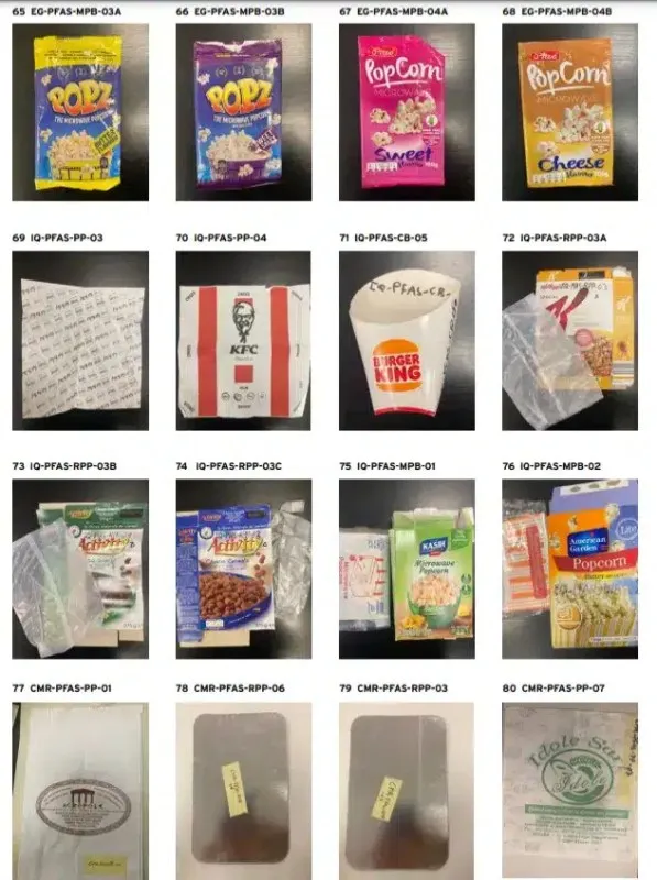The highest PFAS concentrations were consistently found in plant-based molded fiber products such as bowls, plates, and food boxes, often advertised as biodegradable or compostable. Microwave popcorn bags were the most frequent culprits, with PFAS found in 24 out of 28 samples.