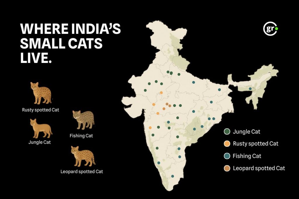 But not all small cats live safely inside protected zones. Species like the jungle cat and rusty-spotted cat often appear outside official reserves. This exposes them to threats like road accidents, poisoning, and shrinking habitat.