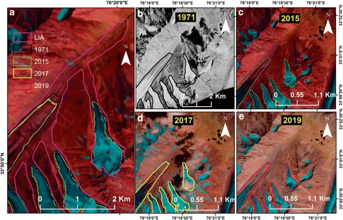 Field observations from the last 4 years (2015–2019) showed that the glacier is now retreating at an average rate of 6.7 ± 3 m a−1. In the study published in the journal Regional Environmental Change, the team attributes the observed recession trends of the Pensilungpa Glacier to increased temperature and decreased rainfall during winters.
