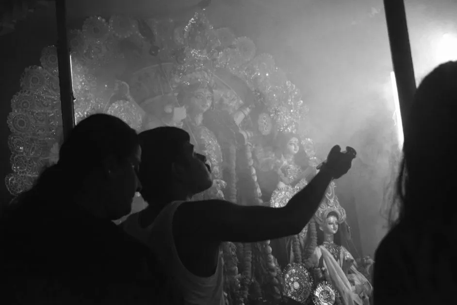 After 1943, they came back to their Behala house and after that, the puja has been going on by the idol worship process till now. Currently Indrajeet Banerjee aged 64 years, Abhijeet Banerjee aged 57 years, and Prasenjeet Banerjee aged 55 years are active members and are looking after the management of the Durga Puja.