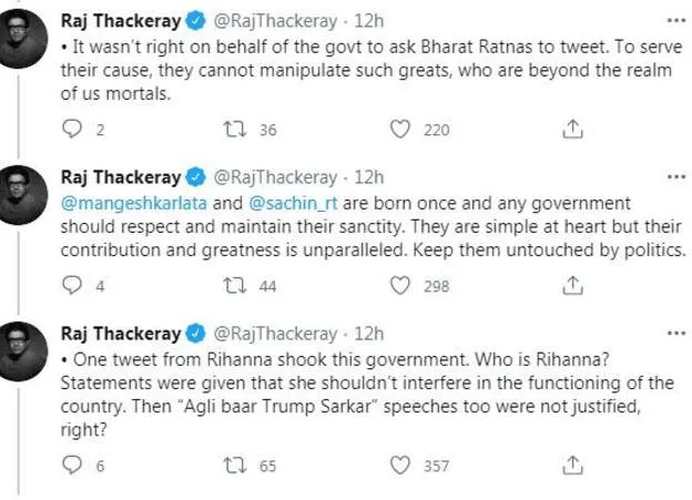 Raj Thackeray said, “The government was shaken by a tweet by Rihanna. Who is Rihanna? She is not interfering in the work of our country. If this is the case then the speech of ‘Trump government next time’ is also not appropriate. “The Prime Minister should solve the issues of farmers.