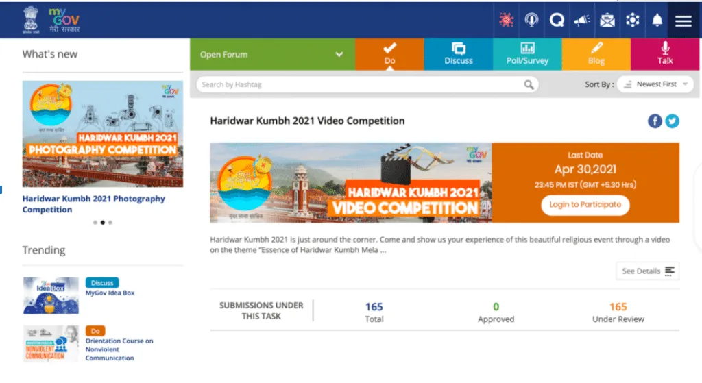 Yes, if after reading the headline you’re thinking of video competition to celebrate the ‘essence’ of Kumbh-2021 organised by the Government of India, you have hit the bull’s eye. And, if it is hard for you to believe above is the screengrab from the website. Courtesy to mygov.in.