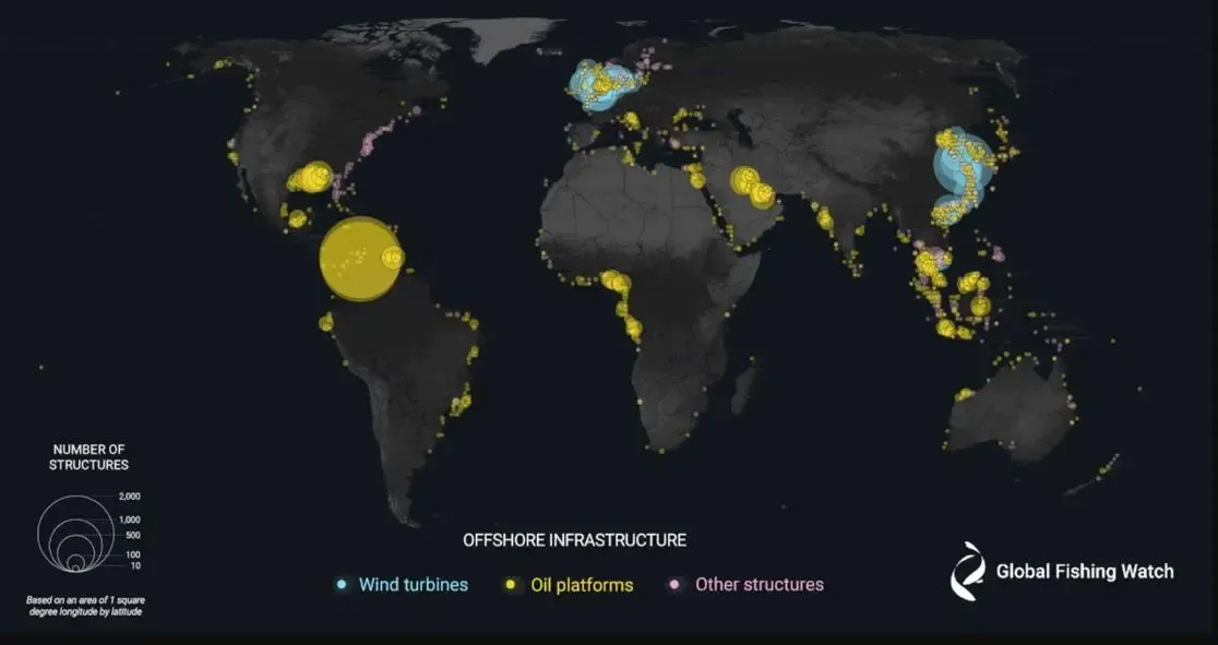 A team of researchers from Global Fishing Watch, the University of Wisconsin-Madison, Duke University, UC Santa Barbara, and SkyTruth in the USA studied 2 million gigabytes of satellite images from 2017 to 2021. They were looking for ships and infrastructure near the shore in coastal waters on six continents, where over three-quarters of all industrial activity happens.