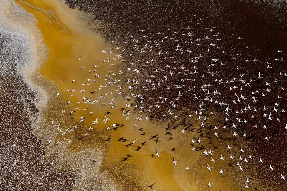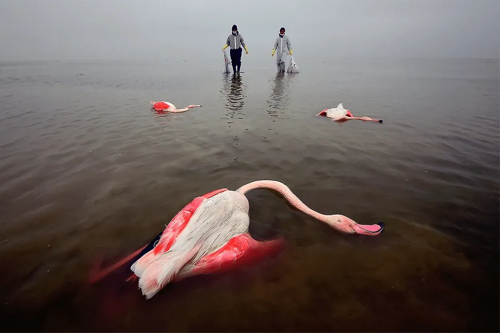 Photographer Mehdi Mohebi Pour has won first prize for his image ‘The bitter death of birds’. The photograph shows just three of the thousands of birds that died in the Miankaleh lagoon, Iran, in 2021 due to water contamination.