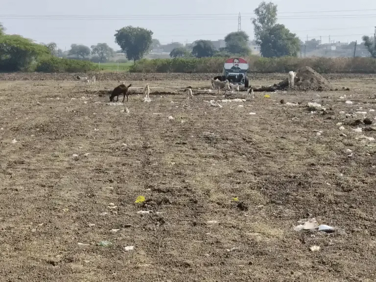 The Yatra moved from Indore city over to the religious city of Ujjain, via Sanwer. Now the management of waste here was rather dealt with in a different way. One can easily observe the anomaly in management when it comes to urban and rural areas. Here, on the outskirts of Ujjain, we observed an accumulation of waste, mostly plastics, out in the open. The waste was polluting fields and could have been easily accessed by cattle.