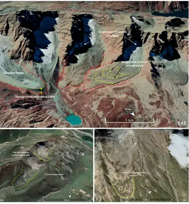 For the study, data collection involved the use of remote sensing data, including high-resolution satellite images from Google Earth Pro for the years 2019–2022. These images helped identify and map rock glaciers in the challenging Himalayan terrain. The ASTER Digital Elevation Model (DEM) provided information on slope, aspect, and elevation of rock glaciers.