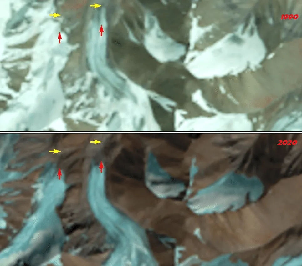 The study also analyzed the impact of topographical effects and varying debris cover on glacier meltdown. This analysis indicated a decline of 6.7 ± 0.1% (0.23% a−1) in the Pangong area from 1990 to 2019, with clean-ice glaciers having a higher return than debris-covered glaciers (5.7 ± 0.14). (8.4 ± 0.28%) showing. , However, the overall slowdown is less in comparison to other parts of the Northwest Himalayas.