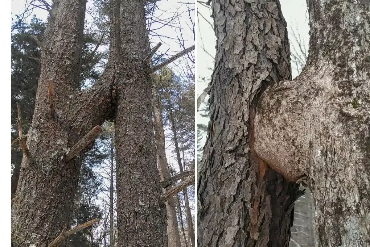 Just as grafting involves joining tissues between trees intentionally, inosculation happens naturally when trees’ outer bark gets scraped off. This exposure allows the inner tissues of branches or trunks to attach to each other when they come in contact.