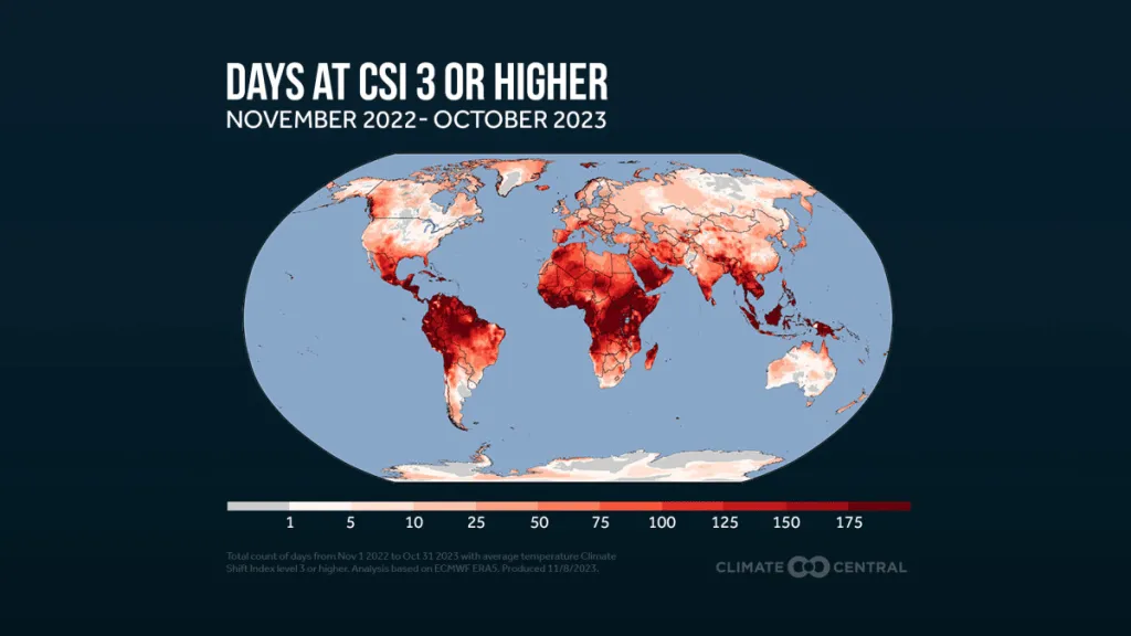 Climate Central, a nonprofit climate science and news organization, has released an analysis of climate data from November 2022 to October 2023. The report reveals that this 12-month period was the warmest on record, with billions of people worldwide experiencing extreme heat waves that were likely intensified by climate change.