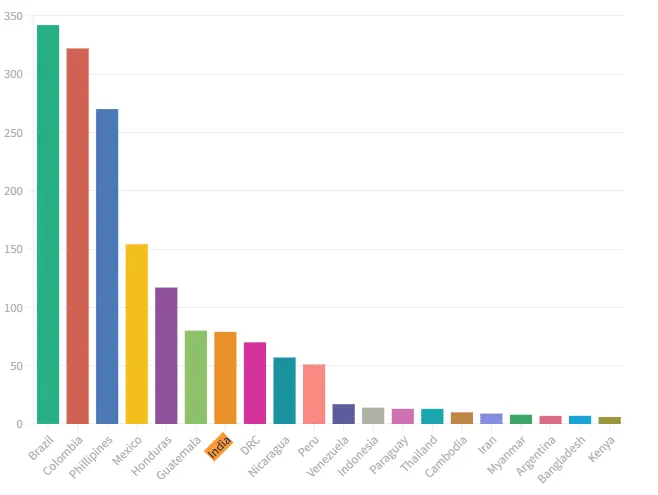 The killings have disproportionately affected low-income countries and indigenous communities; 39% of the victims belonged to this demographic group, despite the fact that it represents only 5% of the world’s population.