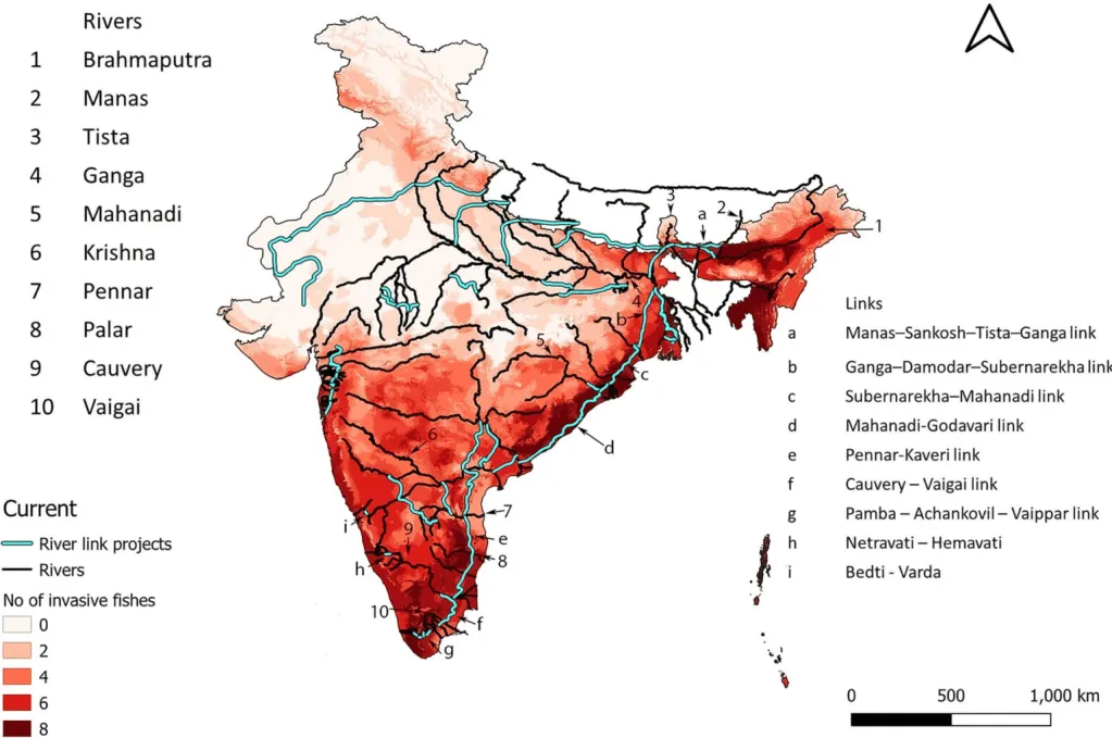 Recent research highlights concerns about India’s River Interlinking Project, revealing potential threats to native fish species. The study indicates that through the project, invasive alien fishes are spreading to already inhabited areas, making almost 31% of the total area habitable for these invasive species.