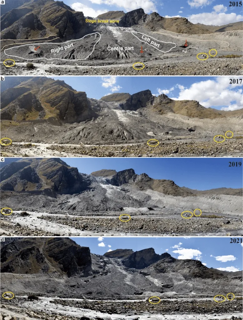 The results of the study are alarming. Remote sensing data reveals that the Parkachik Glacier experienced an average retreat rate of around 2 meters per year between 1971 and 1999. However, between 1999 and 2021, this retreat rate increased dramatically to around 12 meters per year. More worrisome, field observations indicate an even higher rate of retreat of approximately 20.5 meters per year between 2015 and 2021.