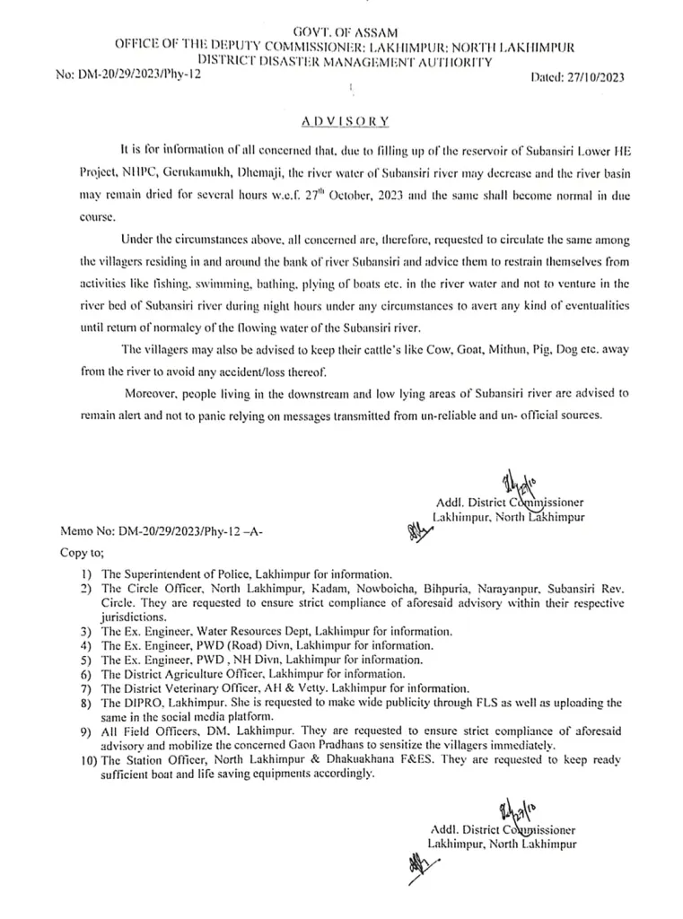North Lakhimpur District has issued an advisory notice for safety in the downstream area, but we need further measures to compensate affected individuals. We hope that NHPC will adhere to safety measures and that oversight bodies such as CEA, Central Water Commission (CWC), and National Disaster Management Authority (NDMA) will enforce compliance.