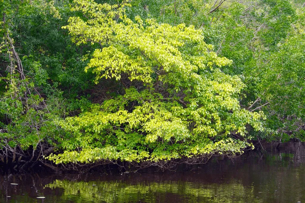 The Manchineel tree is commonly found near the coast, particularly in mangroves, but can also be found in other coastal areas such as beaches, sand dunes, and lagoons. It is known for its glossy green leaves and small greenish-yellow fruit that resembles apples.