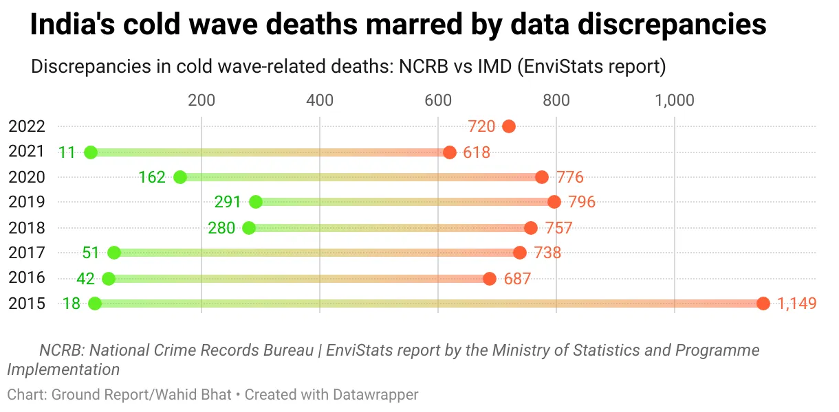 While the risks of cold waves are well-documented, discrepancies in cold wave-related death data make it challenging to assess the true scale of the issue. Ground Report analysis of both datasets found significant discrepancies between the two sources.