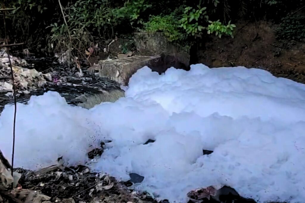 नदी में कई जगहों पर इस तरह से झाग देखने को मिलता है