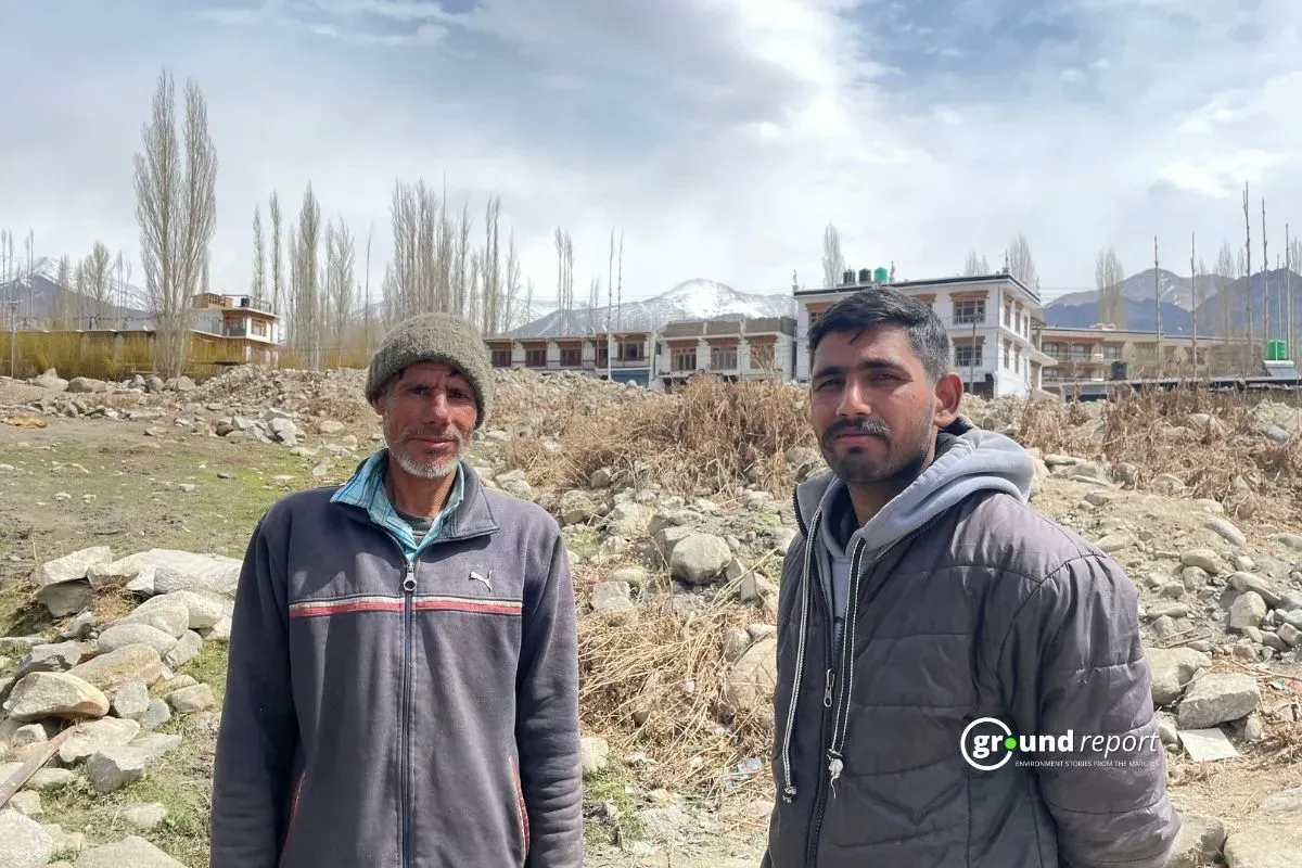 लेह में कड़ी मेहनत कर रहे मुनव्वर लाल (दाएं) और पवन (बाएं) से मिलें। Photo Credit: Wahid Bhat/Ground Report