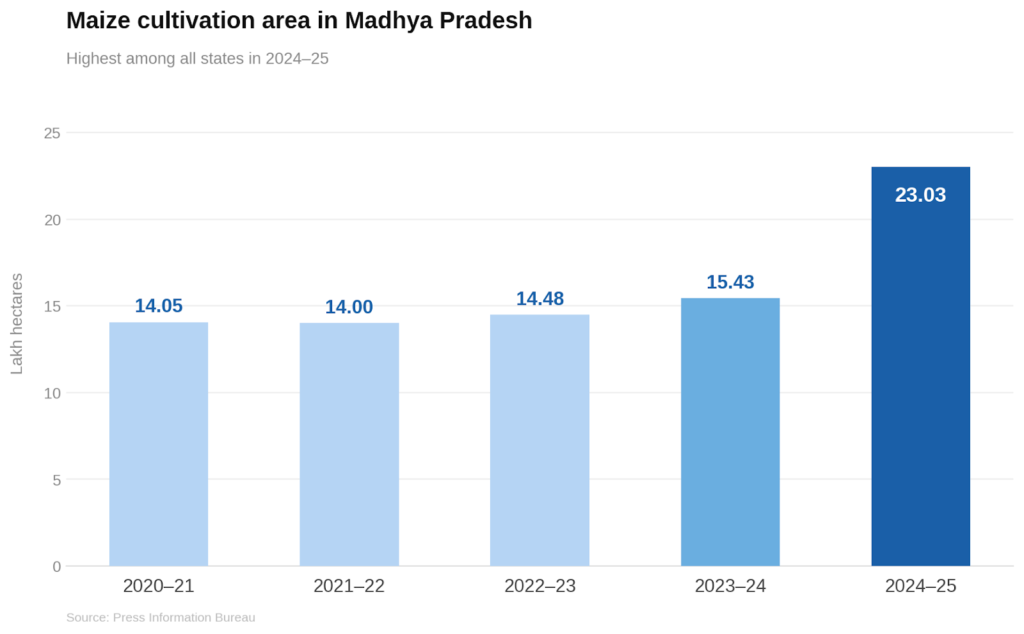 The state of Madhya Pradesh has become the top producer of maize in India after consistent growth in maize production across years.