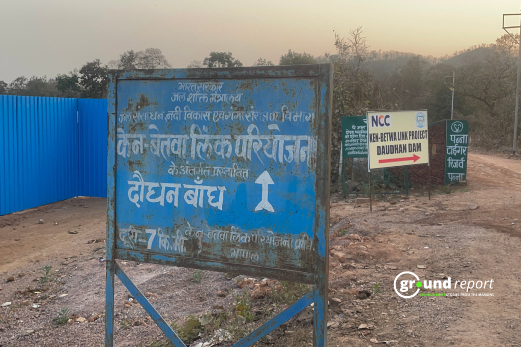 The Daudhan Dam is under construction in the first phase of the Ken-Betwa River Linking Project to supply water surplus from the Ken River to the Betwa River and ensure water in Madhya Pradesh’s water-scarce areas of the Bundelkhand region. Ahead of the dam construction site, inside the Panna Tiger Reserve, lies Daudhan village, and a few kilometres further ahead, within the reserve’s core area, is Palkoha.