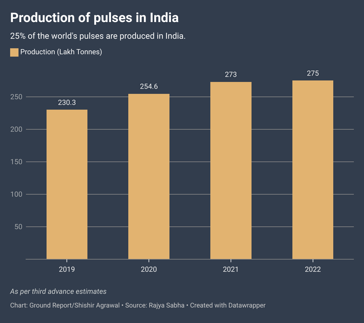 Thakur adds that the production of pulses in 2023-24 was 244.93 lakh tonnes. Whereas during 2015-16 it was 163.23 lakh tonnes. That is, in eight years, the total production has increased by only 81.7 lakh tonnes across the country. According to the government, the total production of pulses in India is sufficient to meet the domestic demand.