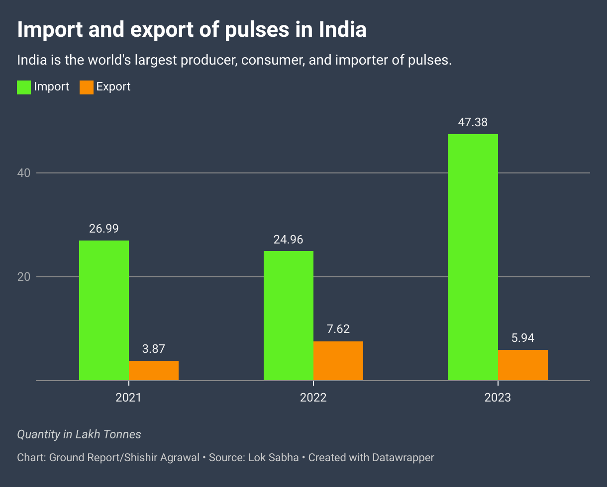 But according to the data from 2021 to 2023-24, the import of pulses in India has also increased. In the financial year 2023-24, it has doubled as compared to last year. Whereas in comparison, we are exporting pulses in small quantities.