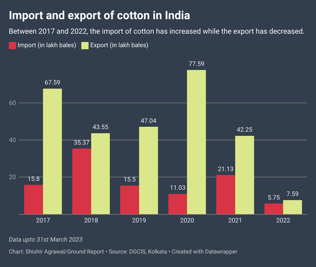 It is worth noting that between 2017 and 2022, the import of cotton has increased while the export has decreased. In 2017-18, 15.80 lakh bales of cotton were imported, which reached 21.13 lakh bales in 2021-22. Whereas in 2017, 67.9 lakh bales of cotton were exported from India, which increased to 42.25 lakh bales in 2021-22.