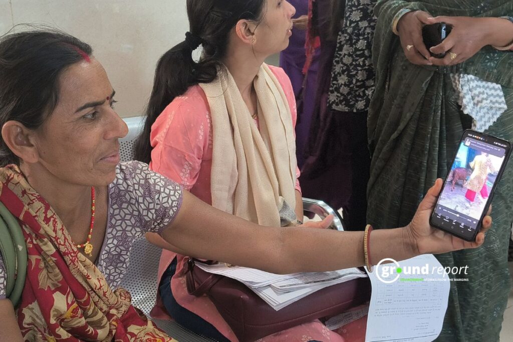 Anganwadi worker Savitri Gurjar from Kalipith village, Rajgarh, shows a video of villagers misbehaving during vaccination. Photo: Abdul Wasim Ansari