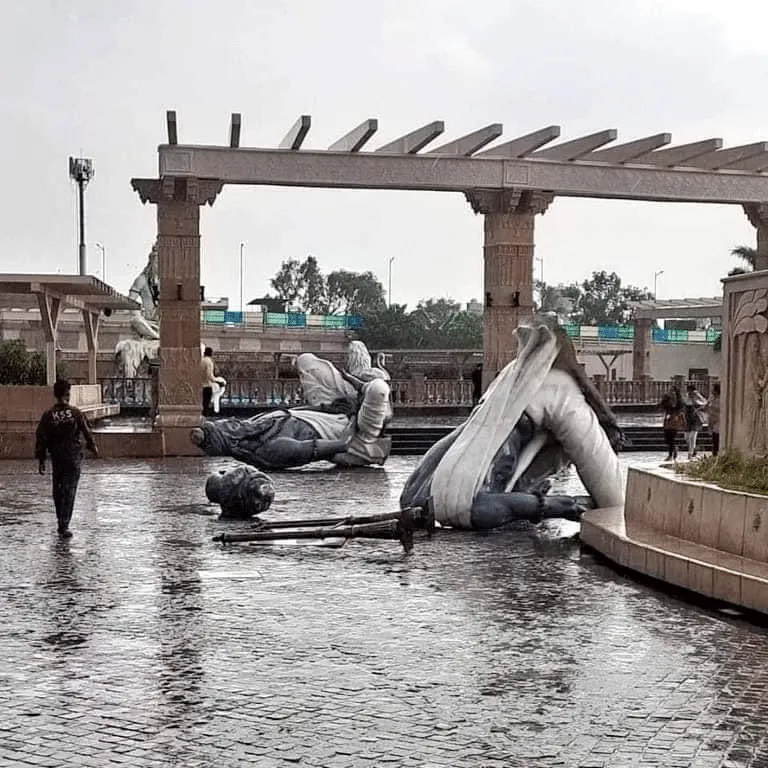 District Magistrate Kumar Purushottam stated that a powerful storm had hit the area, causing one idol to be toppled, while the remaining idols remained intact. Efforts will be made to restore and reinstall fallen idols, using cranes for the task. The storm, which lasted for about an hour, caused widespread damage throughout the district, including downed trees.