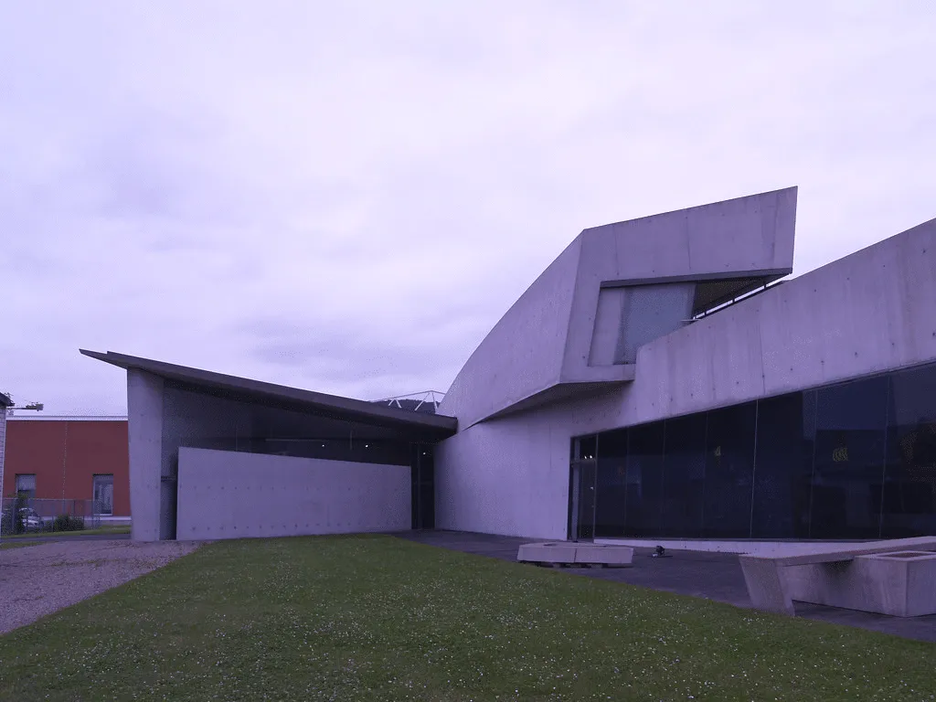 The Vitra Fire Station was one of Hadid’s first architectural projects and includes the same dynamic and radical gestures that would characterize her career. The commission arose after a fire that destroyed structures on the Vitra Campus. Hadid was chosen to design and execute a building that would help provide immediate relief for future catastrophes.