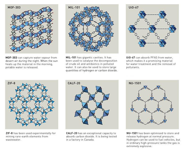 Many types of MOFs have been created, each built for a specific purpose. Source: © Jonah Jarneastad/The Royal Swedish Academy of Sciences