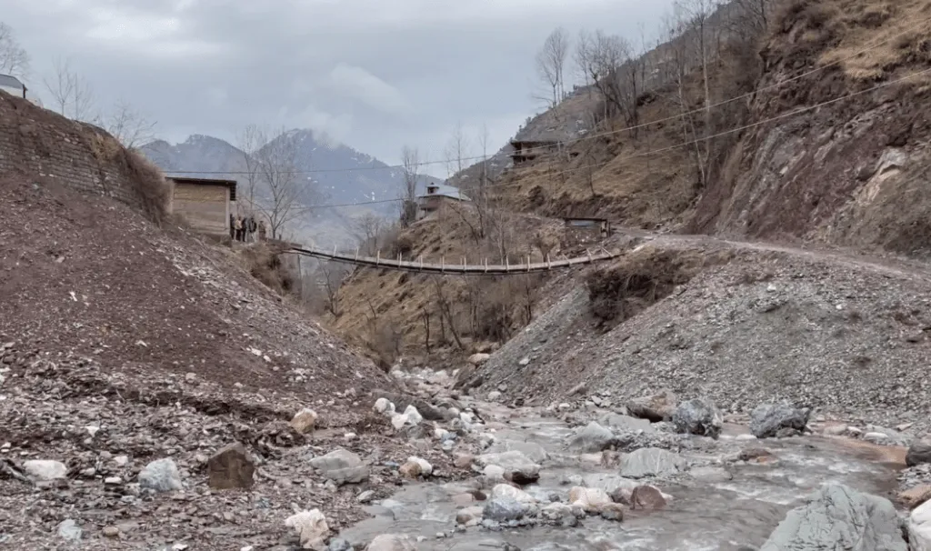 रिपोर्ट: रयाज़ अहमद | अराई मलका, पुंछ, जम्मू कश्मीर | शब्बीर अहमद की बेटी के पैर में चोट लगी है, उन्होंने उसका शहर जाकर इलाज करवाया। पुंछ से 20 किलोमीटर की यात्रा कर वो जब अपने गांव अराई मलका (Arai Village) पहुंचे तो उन्हें अपनी बेटी को चारपाई पर लेटाकर घर तक ले जाना पड़ा, क्योंकि उनके गांव में सड़क तो है लेकिन पुल नहीं है, जिसकी वजह से कोई गाड़ी घर तक नहीं जाती। वो कहते हैं कि अगर पुल होता तो शायद उन्हें आज इस मुसीबत का सामना नहीं करना पड़ता।