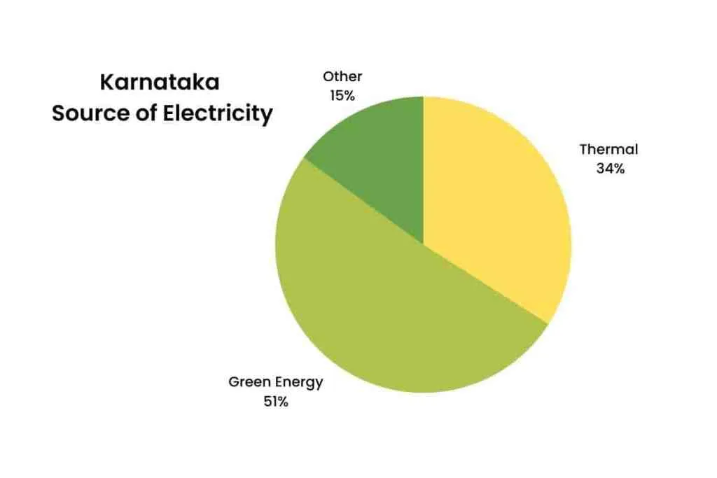 कर्नाटक में केवल 34 फीसदी बिजली कोयले से बनती है, 51 फीसदी बिजली रीन्यूएबल सोर्सेस जैसे विंड और सोलर से बनाई जाती है, और 9 पर्सेंट बिजली अन्य सोर्सेसे से मिलती है। आप सोच रहे होंगे की शायद कर्नाटक में बहुत बड़े-बड़े सोल पावर प्लांट होंगे। लेकिन ऐसा नहीं है। देश के टॉप 10 सोलर प्लांट में से केवल एक पावागड़ा पार्क कर्नाटक में है, यहां ज्यादातर सोलर एनर्जी घरों की छत पर लगे सोलर पैनल से बनाई जाती है।