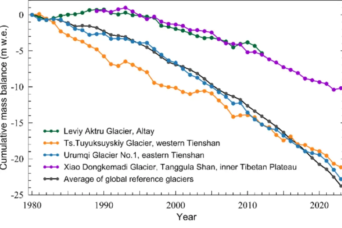 साल 2022-2023 में, 22 में से 20 में हाई माउंटेन एशिया (HMA) क्षेत्र में ग्लेशियर (Glacier) देखे गए थे। इनमें से तिब्बती पठार पर केंद्रित एक उच्च ऊंचाई वाला क्षेत्र, जिसमें ध्रुवीय क्षेत्रों के बाहर बर्फ की सबसे बड़ी मात्रा होती हैउसका द्रव्यमान लगातार गिरता आ रहा है। डब्ल्यूएमओ की रिपोर्ट में कहा गया है कि ऐसा मुख्य रूप से पूर्वी हिमालय में रिकॉर्ड तोड़ उच्च तापमान और शुष्क परिस्थितियों के कारण हुआ। पिछले 40 वर्षों में, एचएमए क्षेत्र के ग्लेशियरों में बड़े पैमाने पर नुकसान दर्ज किया गया है। इस क्षेत्र में 1990 के दशक के मध्य से बड़े पैमाने पर नुकसान की दर में वृद्धि हुई है।